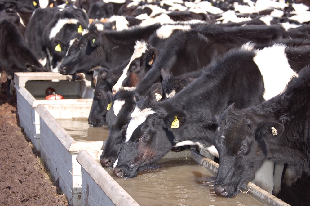 Sería raro que un administrador de una lechería optara por limitar el agua como una de gestión de ahorro de costos. Los gerentes saben el papel clave que desempeña el agua para que sus rebaños prosperen. El agua es el nutriente esencial más importante detrás de la ingesta de alimento, no sólo de las vacas lactantes, pero también promueve el crecimiento y el desarrollo en los terneros jóvenes y novillas de más edad. La comprensión más básica de las necesidades de salud del ganado, dicta que la deshidratación es negativo. La naturaleza misma de la vaca en lactancia requiere que una cantidad suficiente de agua debe ser proporcionada para facilitar la producción de leche. Esto también es cierto en todas las etapas de crecimiento bovino. Empecemos cómo el agua contribuye al crecimiento de los terneros sanos debido a la forma en que se promueve el desarrollo del rumen temprano y rápido. Pero un poco de agua puede parecer un tanto innecesaria cuando se considera que los terneros consumen leche o sustituto de leche. Sin embargo, un alto porcentaje de la leche y sustitutos de leche terminan en el abomaso y no mucho sustituto de leche termina en el rumen. Por otra parte, casi toda el agua que los terneros bebida entra en el rumen, donde contribuye a la fermentación y la suspensión de granos y agua que promueve el crecimiento papilas temprana. Todos los días de la ternera es especialmente crítico para su crecimiento futuro que el agua este disponible a los terneras durante todo el día. Por supuesto, el reto no es simplemente proporcionar, pero para hacerlo sin importar el clima. Las temperaturas extremadamente frías y los cubos congelados resultantes deben ser tratados para proporcionar agua a los terneros en jaulas en el invierno. Bajo condiciones estresantes de calor necesidades de agua aumentan 1,2 a 2 veces. Además, el Dr. Simon Peek, Universidad de Wisconsin, hace hincapié en que el tiempo es también importante. Se insta a que se proporcione agua inmediatamente después de la alimentación, incluso en los meses de invierno. En general, los terneros antes del destete suelen beber alrededor de un cuarto de galón de agua por cada libra de iniciador consumido. Esto es, además de su leche o sustituto de leche. Los beneficios del agua de libre elección para los terneros: A las 4 semanas de edad con becerros de libre elección la bebida del agua aproximadamente 95 libras (12 galones) de agua. Gratis terneros agua elección también consumen más libras de granos de inicio . Un estudio reportó aproximadamente cuarenta y cuatro por ciento más de grano en las primeras cuatro semanas para los terneros que tenían un acceso constante al agua. Un estudio de 1984 informó de que para cada litro adicional de agua consumida hubo un aumento correspondiente en la ganancia de peso de 56 gramos por día. Las ganancias de peso antes del destete se han demostrado para dar lugar a una mayor producción de leche como una vaca. Sin embargo, el verdadero desafío es asegurarse de que los terneros en realidad beben el agua. Cuando se dispone a cerca de la temperatura corporal durante el tiempo frío, son más propensos a beber. El trabajo extra que se requiere para vaciar y volver a llenar cubos de agua a través del día, vale la pena por los beneficios de la hidratación y el aumento de la ingestión de iniciador. Aunque puede haber una variación en el día a día es mucho mejor que desborde cubos en lugar de tener una situación donde los terneros se quedan sin agua. Además, se ha demostrado que la separación de la alimentación y el agua potable elimina la contaminación y aumentará el consumo de alimento y la ganancia de peso corporal por tanto como 13 y 20%, respectivamente, en comparación con tener los cubos de lado a lado. Comer, beber agua y tener un aspecto lechoso Agua libre elección para los terneros puede ser una prioridad más reciente sin embargo gerentes lácteos siempre han reconocido que es importante proporcionar a las vacas lactantes agua. No sólo es esencial para la producción de leche, el crecimiento y healthbut también afecta la función del rumen, la digestión y la absorción de nutrientes. Cada libra de leche de una vaca produce requiere de cinco libras o tres litros de agua. Para vacas de alta producción que los totales de hasta 200 litros de agua todos los días. Reducir la cantidad de agua y se reduce la cantidad de leche producida. Se sabe que las vacas beben 30 a 50 por ciento de su ingesta diaria de agua dentro de una hora de ordeño. Limpie el agua dulce debe ser de fácil acceso a todas las vacas. Un punto de referencia fácil para la palatabilidad del agua es la siguiente: «Si no vas a beber el agua en su granero, tampoco sus vaca. La calidad del agua y la toma de agua están estrechamente relacionados. Por supuesto, los tazones de fuente de agua limpia o tanques son un hecho. Mejores prácticas básicos son los siguientes: Cuencos de agua deben proporcionar 20 litros por minuto para las vacas Los tanques de agua deben suministrar de 30 a 40 litros por minuto Se necesita un canal de agua por cada 20 vacas Se necesitan dos fuentes de agua por grupo para evitar las situaciones de estrés para las vacas de menor rango Los tanques de agua deben ser de fácil acceso De 2,5 a 3 m de espacio abierto alrededor de bebederos son necesarios para minimizar los empujones Prueba de las Aguas La toxicidad es un problema que hay que evitar a toda costa. La palatabilidad viene en lo alto de la lista de prioridades también. Si el agua que se presenta no pasa la prueba de sabor, todos los beneficios se pierden. Por estas dos razones por sí solas, vale la pena considerar que tiene el suministro de agua a su lechería probado. Un sistema de tratamiento puede ser necesario para reducir los niveles de sulfato y cloruro. Problemas visibles con las algas son fáciles de ver y es de esperar eliminan. Es importante reducir al mínimo los niveles de algas. Hay seis ti