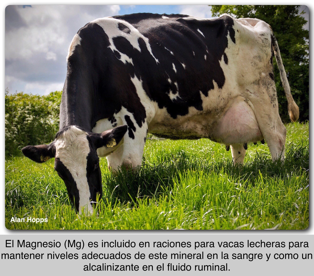 El Magnesio (Mg) es incluido en raciones para vacas lecheras para mantener niveles adecuados de este mineral en la sangre y como un alcalinizante en el fluido ruminal.