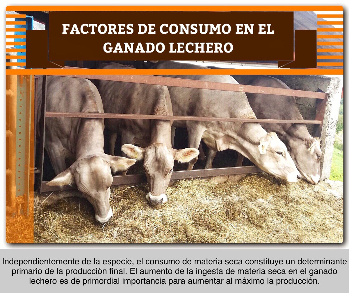 Independientemente de la especie, el consumo de materia seca constituye un determinante primario de la producción final. El aumento de la ingesta de materia seca en el ganado lechero es de primordial importancia para aumentar al máximo la producción.