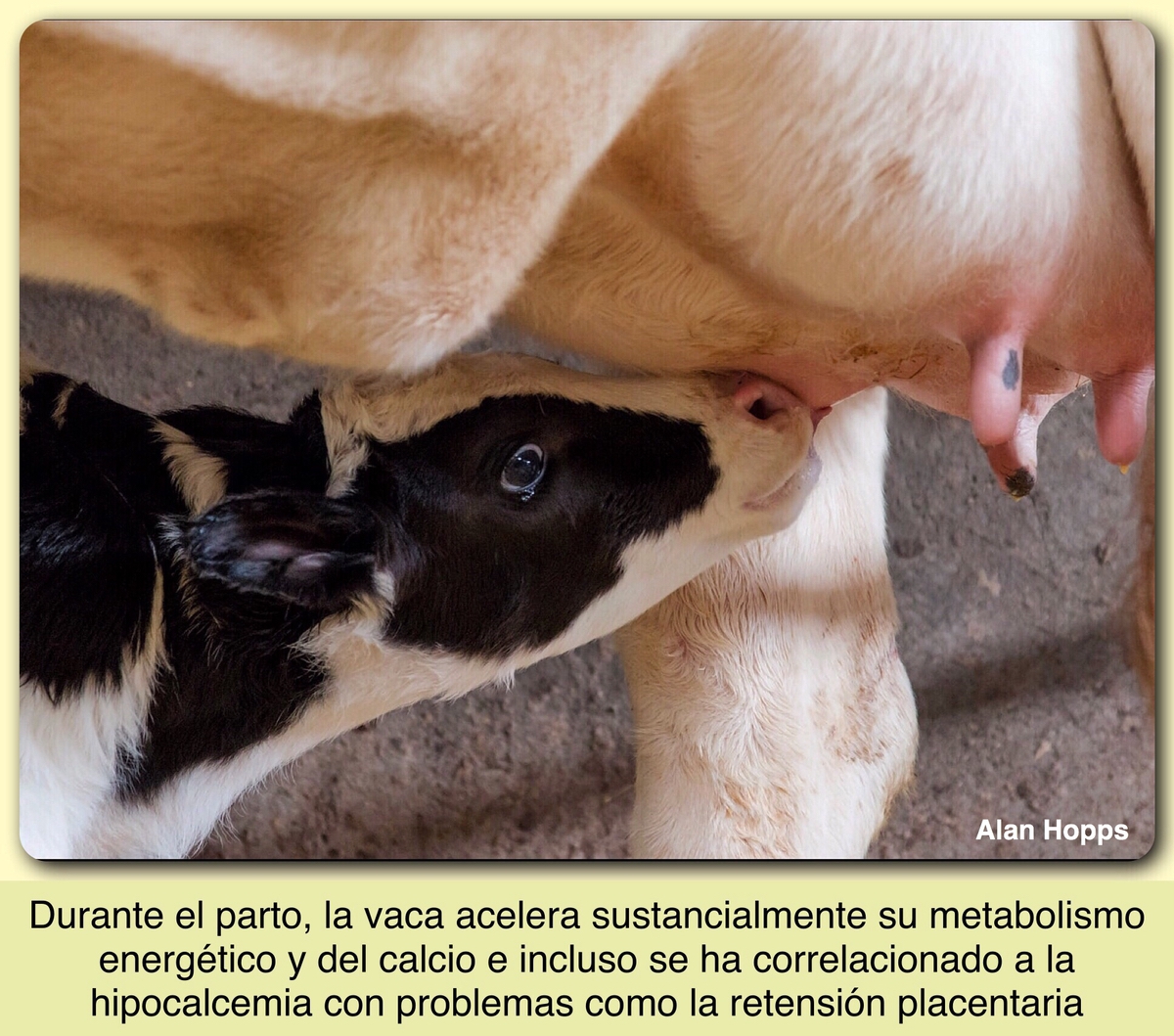 El calcio es utilizado constantemente para funciones esenciales al individuo como la transmisión nerviosa, el movimiento de músculo liso, estriado y cardíaco, participa en una serie de mensajes intracelulares, modula la glicogenolisis de hepatocitos y modula el efecto de la insulina, entre otras acciones (1,4,6,7,10). Durante el parto, la vaca acelera sustancialmente su metabolismo energético y del calcio e incluso se ha correlacionado a la hipocalcemia con problemas como la retensión placentaria (1,4,6,7).