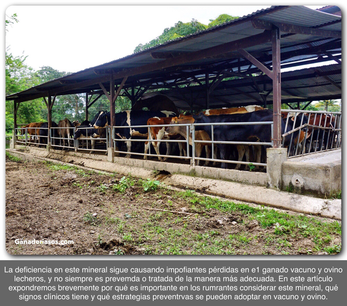 La deficiencia en este mineral sigue causando impofiantes pérdidas en e1 ganado vacuno y ovino lecheros, y no siempre es prevemda o tratada de la manera más adecuada. En este artículo expondremos brevemente por qué es importante en los rumiantes considerar este mineral, qué signos clínicos tiene y qué estrategias preventivas se pueden adoptar en vacuno y ovino.