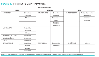 .No todos los antibióticos actúan de la misma manera en los distintos tejidos ni se difunden igual por ellos. Algunos antibióticos difunden muy bien por el tejido mamario, y otros no lo hacen con la misma facilidad. Por ejemplo, la amoxicilina difunde muy bien por la ubre, pero la neomicina no. Por eso cuando apliquemos una cánula para las mamitis, debemos tener en cuenta esta consideración: una cosa es el espectro de acción del antibió- tico y otra la difusión en el tejido que nos interesa (Cuadro 1).