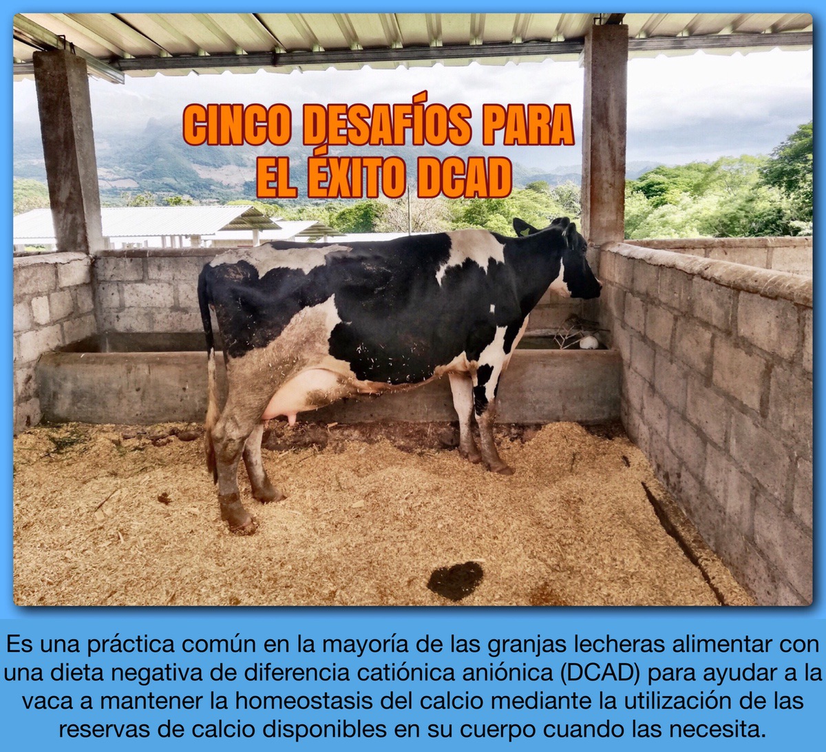 La ciencia y las prácticas de cría de animales se unen en este momento para producir resultados que hacen que llos tambos lecheros sean sostenibles y rentables en los peores tiempos económicos. Es una práctica común en la mayoría de las granjas lecheras alimentar con una dieta negativa de diferencia catiónica aniónica (DCAD) para ayudar a la vaca a mantener la homeostasis del calcio mediante la utilización de las reservas de calcio disponibles en su cuerpo cuando las necesita. Si bien cada vaca de alta producción se convertirá en hipocalcémica o baja en calcio sérico durante al menos unas pocas horas después del parto, la utilización de una dieta DCAD negativa acortará la duración y evitará que se convierta en un problema.