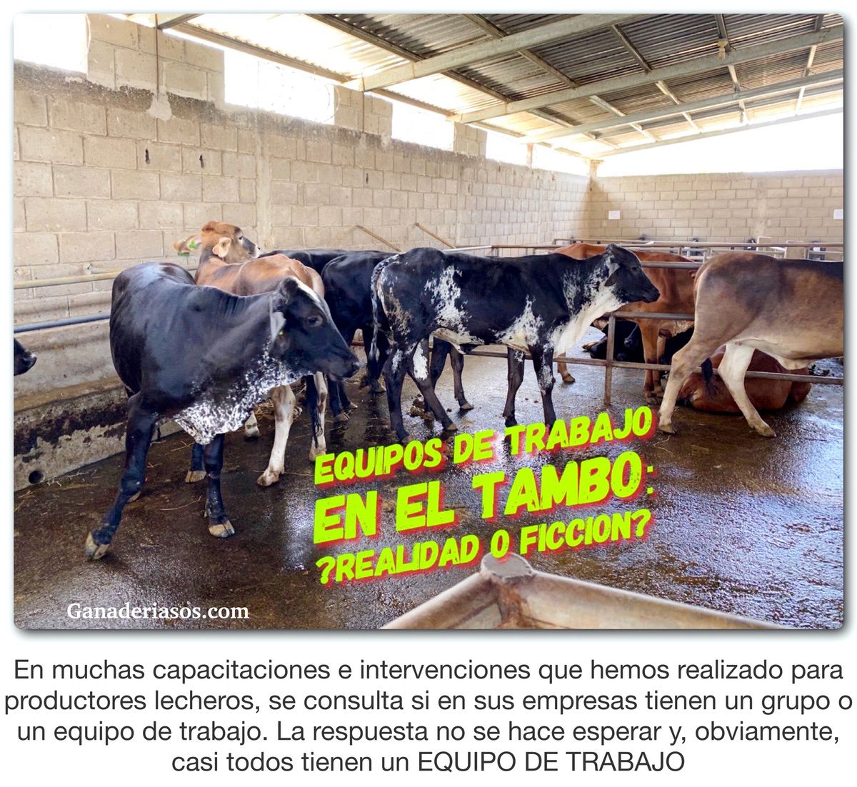 La intensificación y el fenómeno de concentración de vacas se está dando en muchas de las lecherías del mundo y Argentina no es la excepción, lo que hace necesaria la participación de más personas en el proceso productivo. Los tambos son cada vez más grandes, en cantidad de vacas y en gente. De acuerdo a la escala de la empresa, entre familia, operarios y asesores podemos encontrar entre 5 y 12 personas trabajando y más también, pero… ¿son un equipo de trabajo?.