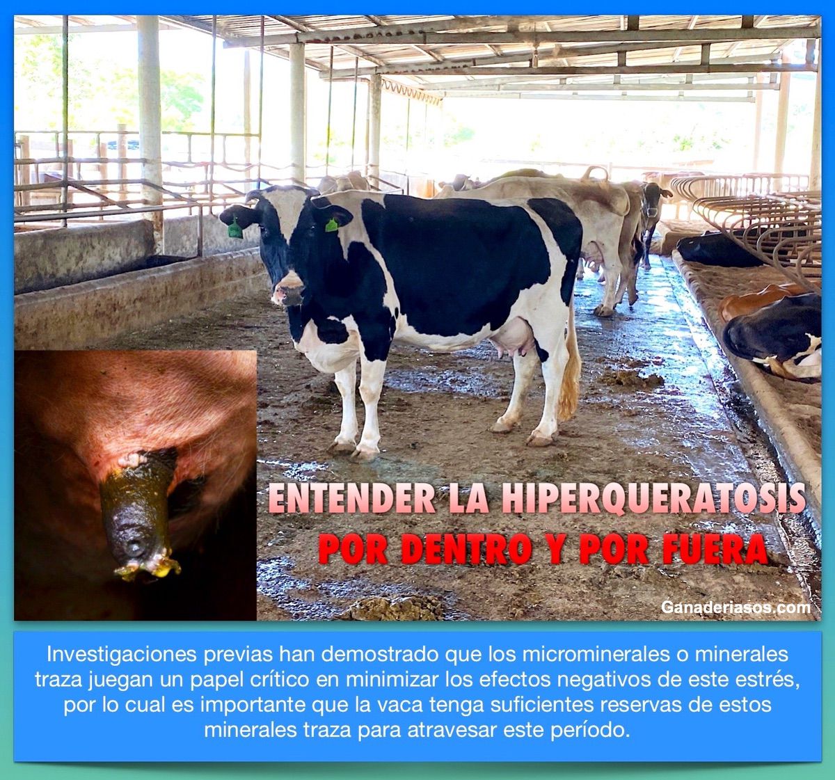 Cuando el movimiento de queratina se vuelve excesivo, posiblemente en el transcurso de una acción mecánica (como cuando el equipo de ordeño o su regulación no son optimizados para un tipo de rebaño), la producción de queratina en el pezón es superestimulada. De manera simple, la hiperqueratosis significa exactamente lo que su nombre dice, excesiva producción de queratina.