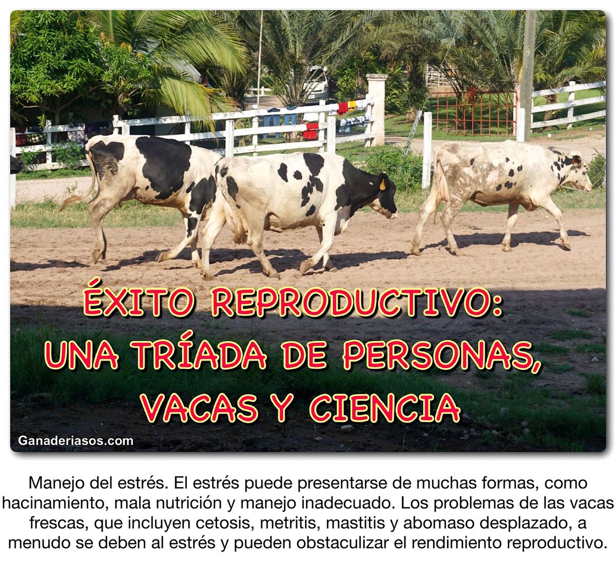 - Manejo del estrés. El estrés puede presentarse de muchas formas, como hacinamiento, mala nutrición y manejo inadecuado. Los problemas de las vacas frescas, que incluyen cetosis, metritis, mastitis y abomaso desplazado, a menudo se deben al estrés y pueden obstaculizar el rendimiento reproductivo.