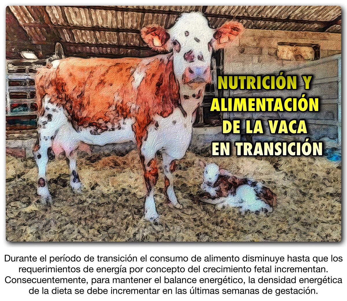 Durante el período de transición el consumo de alimento disminuye hasta que los requerimientos de energía por concepto del crecimiento fetal incrementan. Consecuentemente, para mantener el balance energético, la densidad energética de la dieta se debe incrementar en las últimas semanas de gestación. Su incremento estimula el crecimiento de las papilas ruminales, aumenta la absorción de ácidos grasos volátiles (AGV), adapta la microflora ruminal a dietas con mayor contenido de almidón, incrementa los niveles de insulina y disminuye la movilización de ácidos grasos desde el tejido adiposo. Es por esto que los concentrados energéticos deben ser introducidos en la dieta al menos 3 semanas antes del parto. Para vaquillas se recomienda 5 semanas antes. La cantidad total de energía neta de lactancia por vaca al día debe ser entre 15 a 17 Mcal, por consiguiente con un consumo de entre 12 a 14 kg/d de materia seca, se requiere una densidad energética de 1,25 a 1,40 Mcal de energía neta por kg de materia seca.