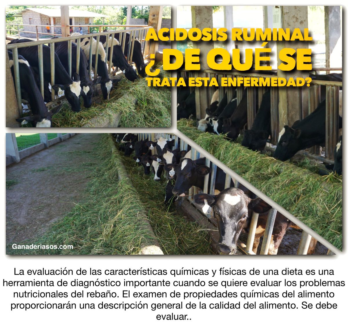 - Otros como laminitis que causa cojera, abscesos hepáticos, diarrea y mayor incidencia de desplazamientosdel abomaso