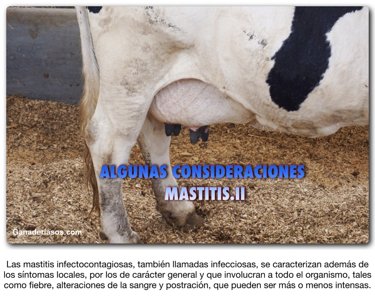 Las mastitis infectocontagiosas, también llamadas infecciosas, se caracterizan además de los síntomas locales, por los de carácter general y que involucran a todo el organismo, tales como fiebre, alteraciones de la sangre y postración, que pueden ser más o menos intensas.