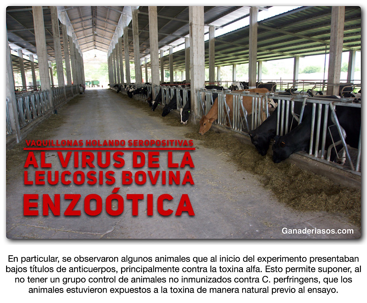 El objetivo de este estudio fue evaluar si la respuesta inmune humoral de vaquillonas holando serológicamente positivas al virus de la leucosis bovina (BLV) es afectada frente a la inmunización a campo con una vacuna clostridial.