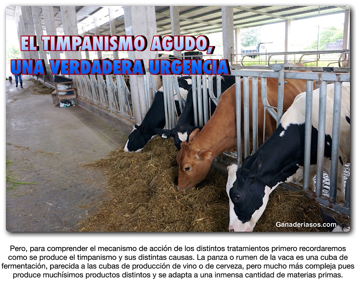 Pero, para comprender el mecanismo de acción de los distintos tratamientos pri- mero recordaremos como se produce el timpanismo y sus distintas causas. La panza o rumen de la vaca es una cuba de fermentación, parecida a las cubas de producción de vino o de cerveza, pero mucho más compleja pues produce muchísimos productos distintos y se adapta a una inmensa cantidad de materias primas.