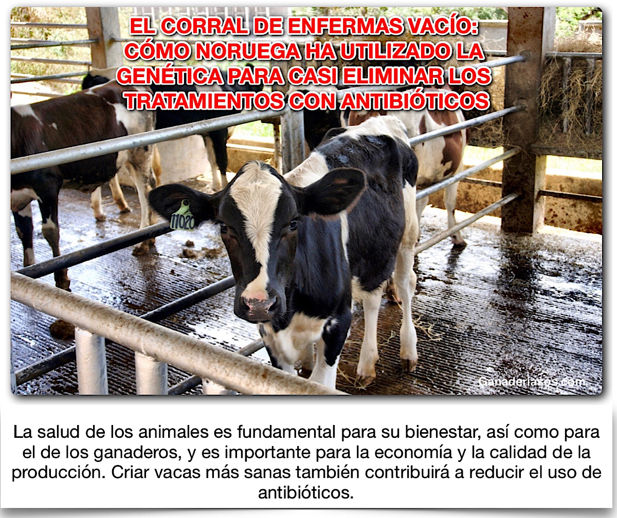 Un informe de la Agencia Europea del Medicamento sobre la venta de antimicrobianos veterinarios en 31 países europeos muestra que Noruega es el país que menos antibióticos utiliza por kilo de biomasa ganadera. La producción ganadera de Suecia utiliza casi cuatro veces, la de Dinamarca 10 veces, la de Alemania 30 veces y la de Italia 100 veces más antibióticos por unidad de producto producido que Noruega. La situación favorable de Noruega es el resultado de las medidas adoptadas por las organizaciones de ganaderos noruegos hace décadas, cuyo objetivo era reducir el uso innecesario de antibióticos. En la producción lechera, se cambiaron las estrategias de tratamiento, se creó el Servicio Noruego de Salud del Ganado, se desarrollaron programas de control de la mastitis, herramientas de asesoramiento y gestión del rebaño, y se incrementó el peso de los rasgos de salud en el programa de cría del Rojo Noruego. La roja noruega es la principal raza lechera de Noruega y representa alrededor del 90% de las vacas lecheras. Esta acción conjunta funcionó y dio lugar a menos