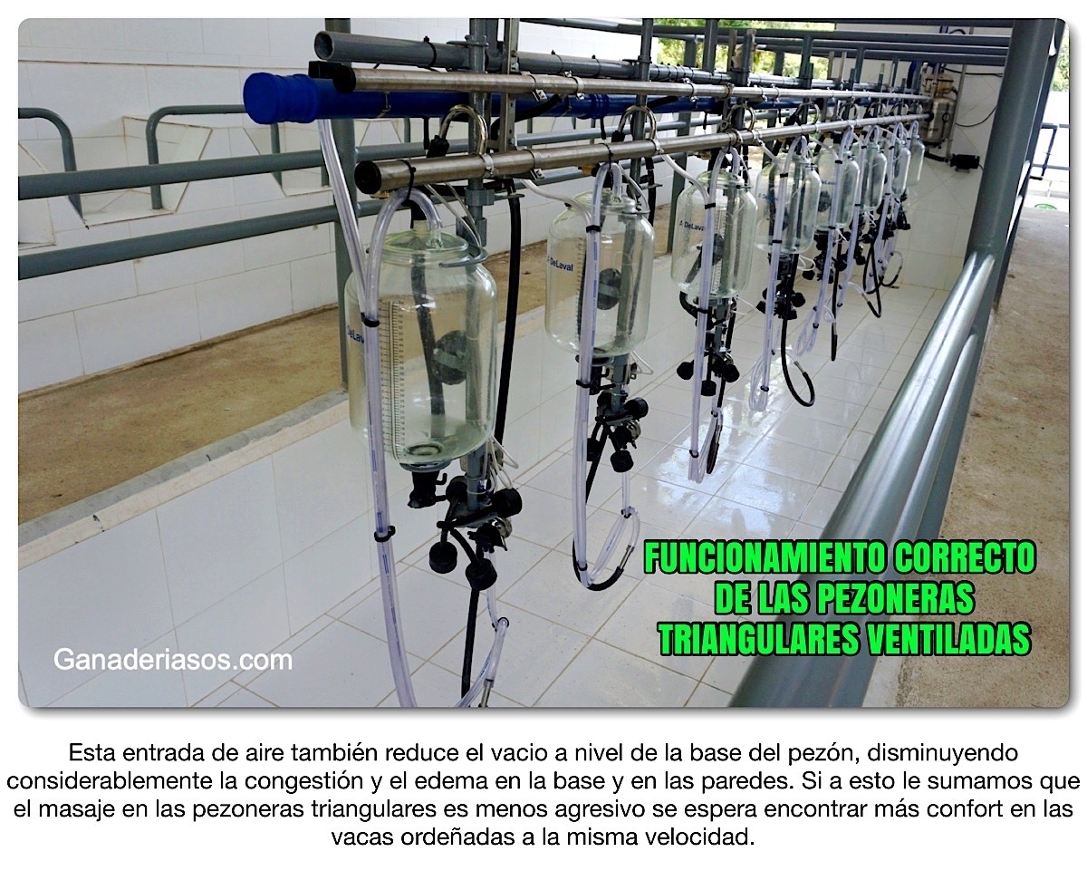 Verificar la capacidad de la bomba de vacío, ya que este tipo de pezoneras tiene un mayor consumo de aire/vacío por punto de ordeño.