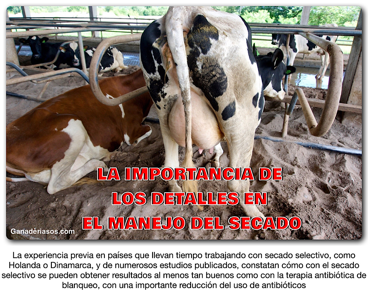 Uno de estos cinco puntos consistía en el tratamiento antibiótico intramamario sistemático a todos los animales en el momento del secado. El propósito era doble: por un lado, disminuir el alto porcentaje de vaca infectadas, principalmente por patógenos contagiosos como S. aureus o Str. agalactiae, adaptados a vivir en la ubre. Por otro lado, este antibiótico de larga acción ayudaba a prevenir las nuevas infecciones durante el periodo seco.