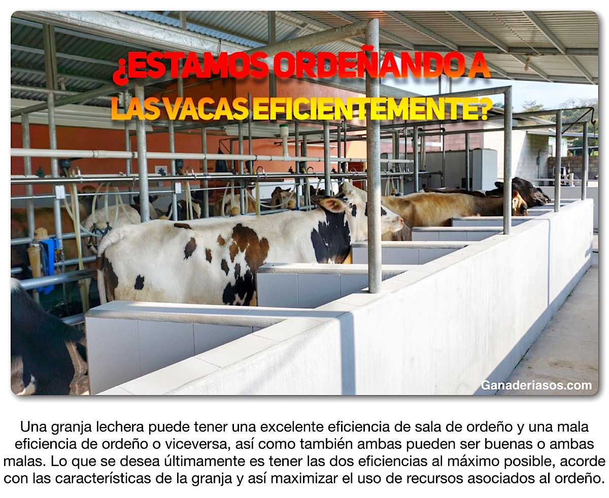 Una granja lechera puede tener una excelente eficiencia de sala de ordeño y una mala eficiencia de ordeño o viceversa, así como también ambas pueden ser buenas o ambas malas. Lo que se desea últimamente es tener las dos eficiencias al máximo posible, acorde con las características de la granja y así maximizar el uso de recursos asociados al ordeño.