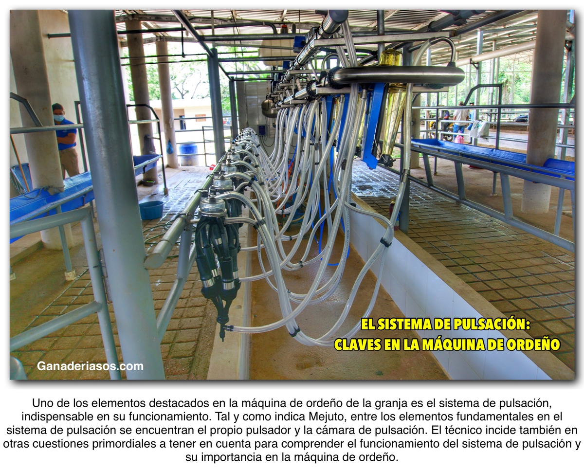 Uno de los elementos destacados en la máquina de ordeño de la granja es el sistema de pulsación, indispensable en su funcionamiento. Tal y como indica Mejuto, entre los elementos fundamentales en el sistema de pulsación se encuentran el propio pulsador y la cámara de pulsación. El técnico incide también en otras cuestiones primordiales a tener en cuenta para comprender el funcionamiento del sistema de pulsación y su importancia en la máquina de ordeño.