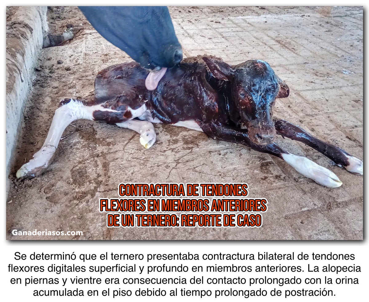 El objetivo del presente reporte es describir el caso de un ternero con contracción severa de los tendones flexores de miembros anteriores y su corrección quirúrgica mediante tenotomía de los mismos. La cirugía se realizó con éxito y se reportan tiempos cortos de recuperación total mediante un protocolo postquirúrgico descrito a detalle en el presente documento.
