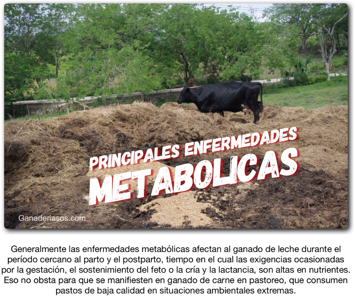 Generalmente las enfermedades metabólicas afectan al ganado de leche durante el período cercano al parto y el postparto, tiempo en el cual las exigencias ocasionadas por la gestación, el sostenimiento del feto o la cría y la lactancia, son altas en nutrientes. Eso no obsta para que se manifiesten en ganado de carne en pastoreo, que consumen pastos de baja calidad en situaciones ambientales extremas.