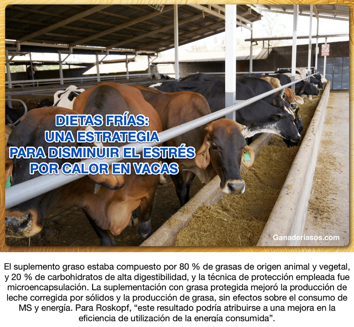 ARTICULO COMPLETO…..DIETAS FRIAS UNA ESTRATEGIA PARA DISMINUIR EL ESTRES POR CALOR EN VACAS