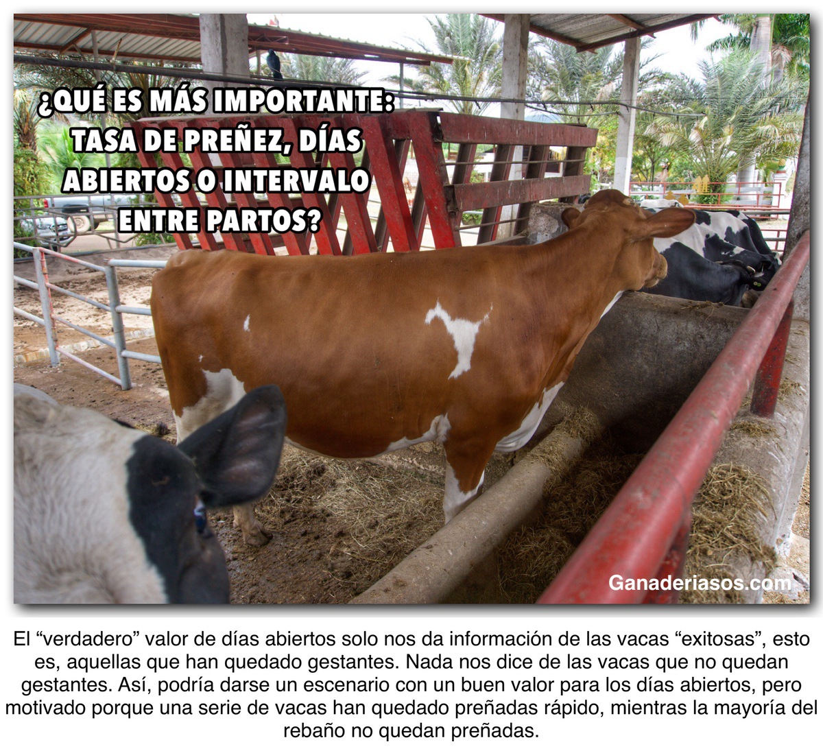 1. El “verdadero” valor de días abiertos solo nos da información de las vacas “exitosas”, esto es, aquellas que han quedado gestantes. Nada nos dice de las vacas que no quedan gestantes. Así, podría darse un escenario con un buen valor para los días abiertos, pero motivado porque una serie de vacas han quedado preñadas rápido, mientras la mayoría del rebaño no quedan preñadas.