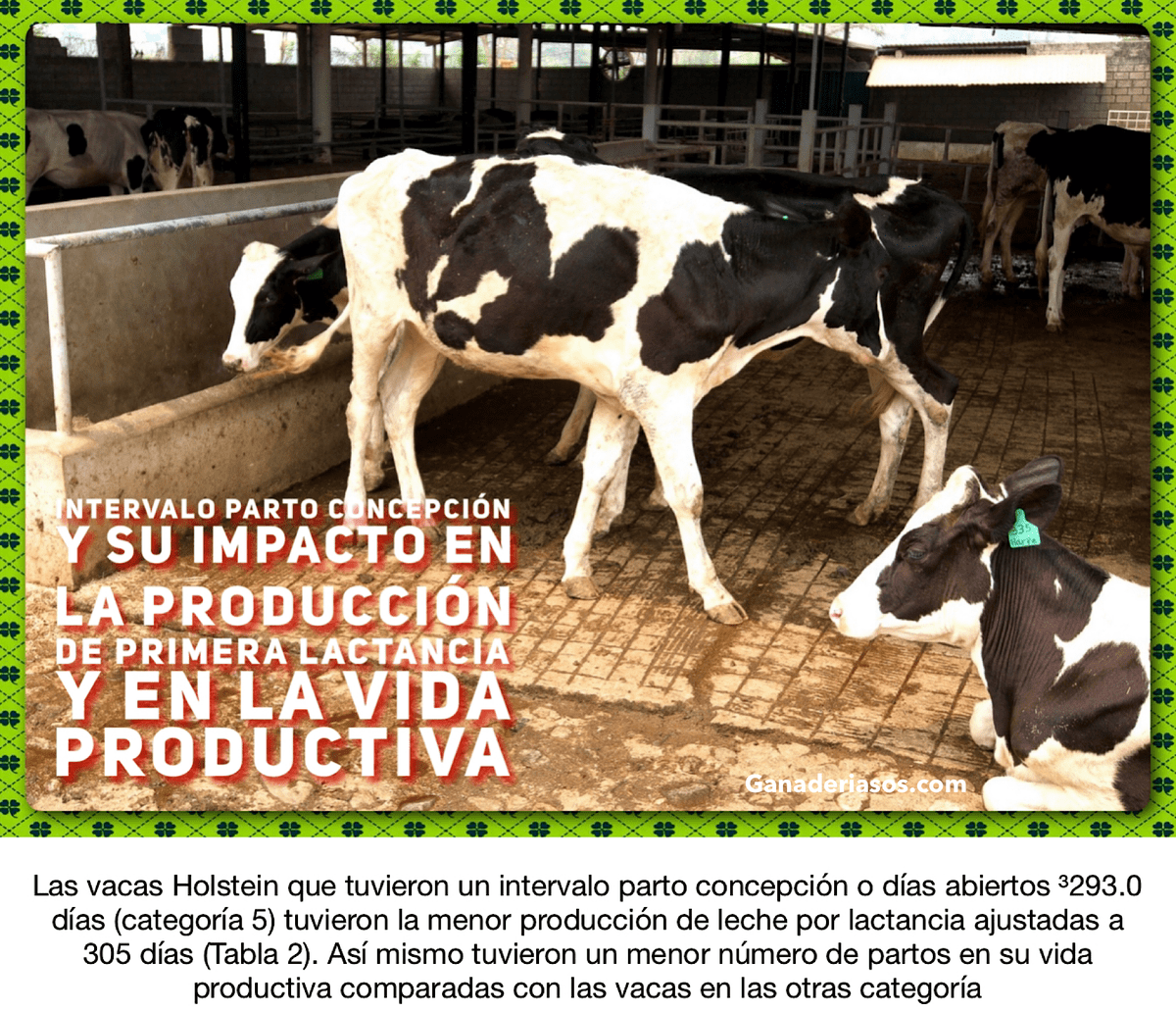 Las vacas que tuvieron un mayor número DA en la primera lactancia tuvieron menos partos(3). En conclusión, las vacas Holstein y F1 Holstein x Jersey en Villa Elisa, Argentina con un mayor número de días abiertos en su primera lactancia tuvieron una menor producción de leche y una vida productiva más corta.